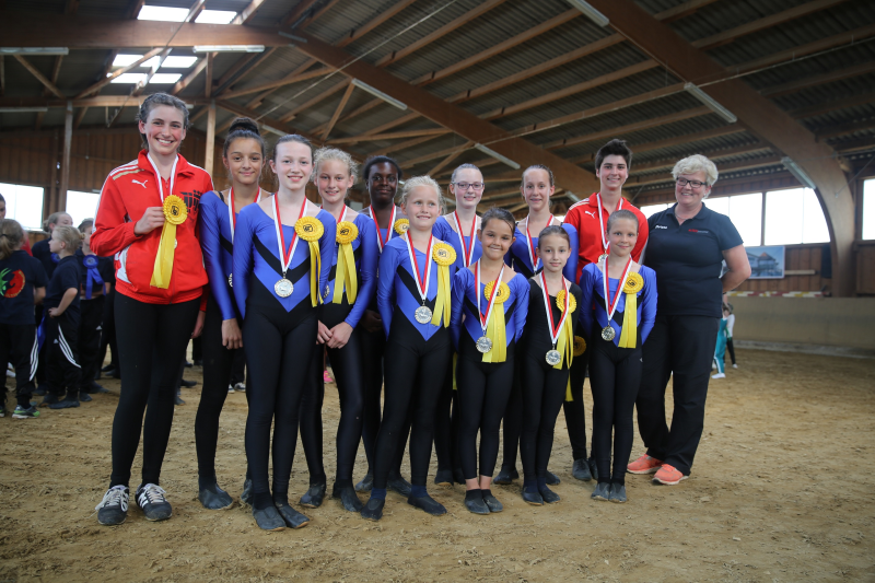 Strahlende Gesichter bei der siegreichen Gruppe aus Böblingen. Rechts die Voltigierbeauftragte des PSK-Böblingen Christa Mauck-Kuder.